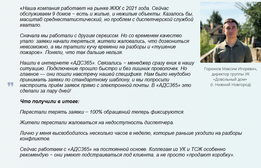 Как это выглядит на практике? Приведем пример нашего клиента. УК «Довольный дом» (г. Нижний Новгород). Читать другие наши кейсы.